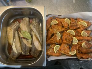 今日もお惣菜を使用して日替わりお弁当の製作です。 今日のメニューは 銀鮭かまの香草レモン焼き&塩こ…